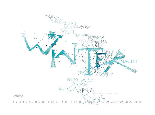 Meinen Kalendern gehört mein besonders Augenmerk... schon mit fünfzehn Jahren habe ich einen eigenen Kalender entworfen und an meine Freunde und an die Verwandtschaft verschenkt ,-))) Seit 2010 habe ich (fast) jährlich einen neuen Kalligrafie-Wandkalender heraus, inzwischen sind die Abstände etwas größer.